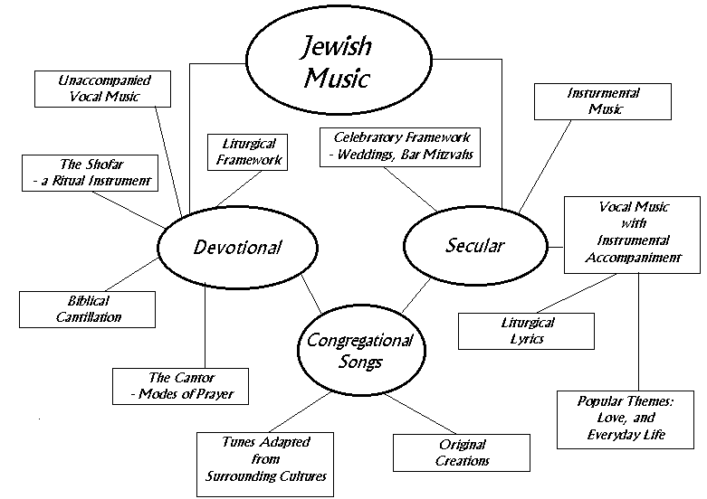 IntroductionThe Jewish people and their music have their roots in the Middle East, specifically in the land of Israel, and their branches everywhere. They have lived, for over 2000 years, amongst many cultures, both Eastern and Western - from Iran to Israel, to the Western Mediterranean and North Africa, to Europe, and most recently, the Americas. Thus, there is a unique property of Jewish music that defies geographical location. This property can be called inter-cultural synthesis. For millenia, Jews have been global wanderers; from the beginning of the common era, about 2000 years ago, until quite recently, they have lived amidst many cultures not their own. To preserve their identity, in a sea of foreign culture, Jewish people have always deemed it wiser to incorporate foreign cultural elements into the Jewish mainstream than to resist all outer influence absolutely. Thus, to a large degree, Jewish Music is a cross-cultural phenomenon, the music of the wanderer. Undoubtedly, certain Jewish ritual musical forms have their sources in antiquity, but the idea of creative adaptation has been a hallmark of Jewish musical life for a very long time; thus, Jewish Music has many faces.